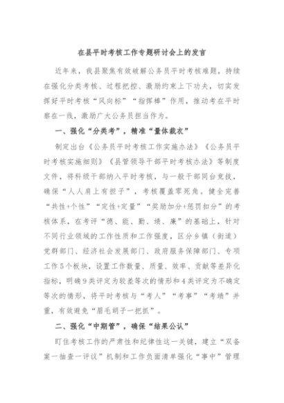 / 【七哥公文】2024年:在县平时考核工作专题研讨会上的发言+更多免费公文+VX:QiGeGongWen2024