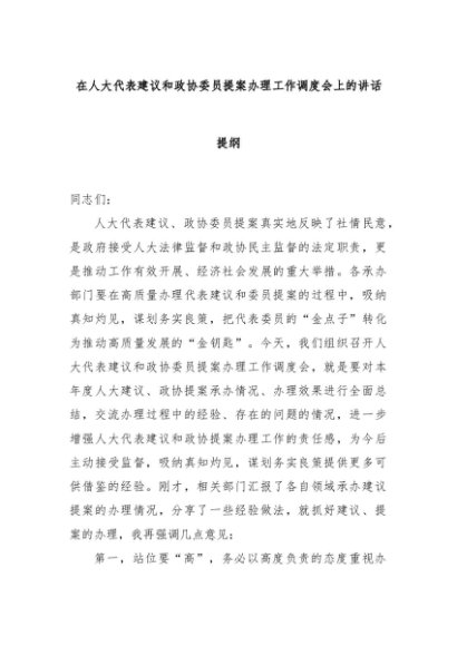 【七哥公文】2024年:在人大代表建议和政协委员提案办理工作调度会上的讲话提纲+更多免费公文+VX:QiGeGongWen2024