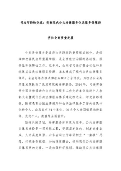 【七哥公文】2024年:司法厅经验交流:完善现代公共法律服务体系服务保障经济社会高质量发展+更多免费公文+VX:QiGeGongWen2024