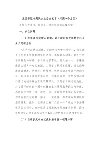 / 【七哥公文】2024年:党委书记专题民主生活会发言(对照9个方面)+更多免费公文+VX:QiGeGongWen2024