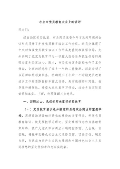 / 【七哥公文】2024年:在全市党员教育大会上的讲话+更多免费公文+VX:QiGeGongWen2024