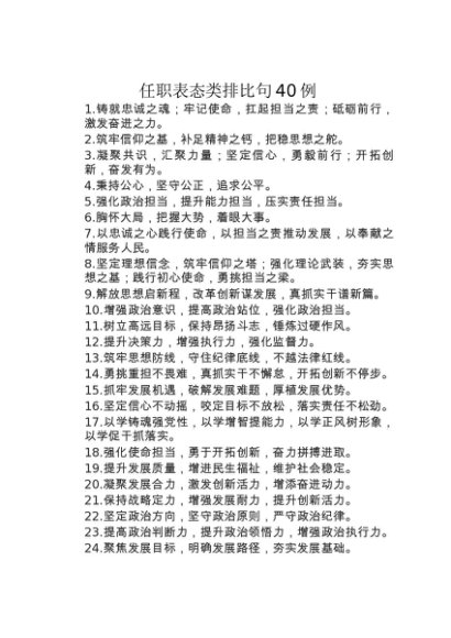 / 【七哥公文】2024年:任职表态类排比句40例+更多免费公文+VX:QiGeGongWen2024