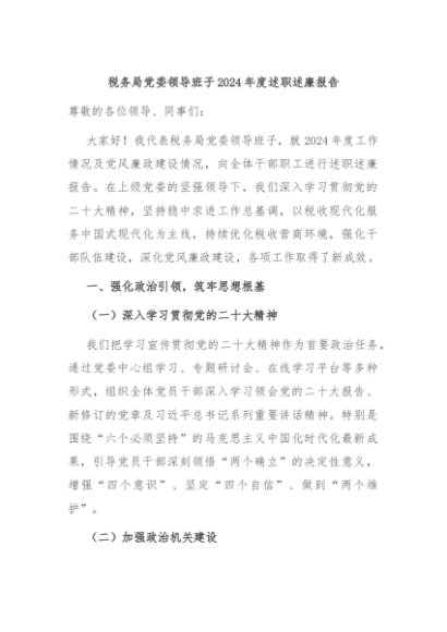 / 【七哥公文】2024年:税务局党委领导班子2024年度述职述廉报告+更多免费公文+VX:QiGeGongWen2024
