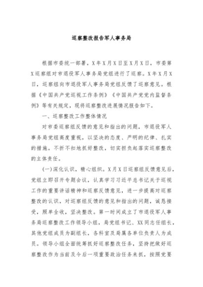 / 【七哥公文】2024年:巡察整改报告军人事务局+更多免费公文+VX:QiGeGongWen2024