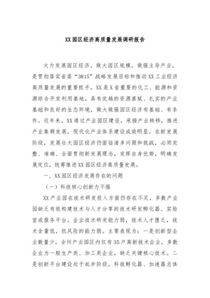 / 【七哥公文】2024年:XX园区经济高质量发展调研报告+更多免费公文+VX:QiGeGongWen2024