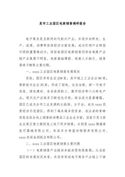 / 【七哥公文】2024年:某市工业园区电商销售调研报告+更多免费公文+VX:QiGeGongWen2024
