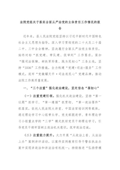 【七哥公文】2024年:法院党组关于落实全面从严治党的主体责任工作情况的报告+更多免费公文+VX:QiGeGongWen2024