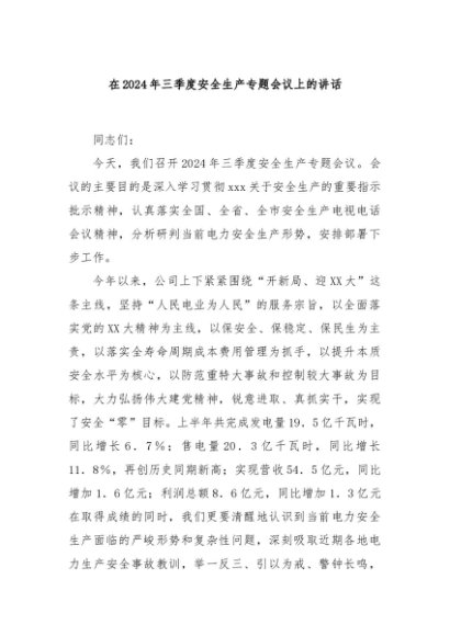 / 【七哥公文】2024年:在2024年三季度安全生产专题会议上的讲话+更多免费公文+VX:QiGeGongWen2024