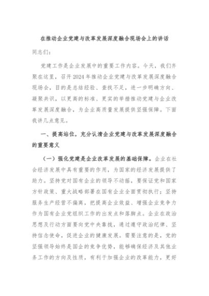 / 【七哥公文】2024年:在推动企业党建与改革发展深度融合现场会上的讲话+更多免费公文+VX:QiGeGongWen2024
