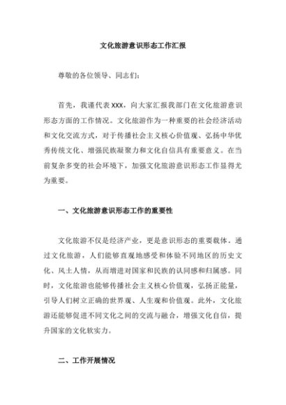 / 【七哥公文】2024年:文化旅游意识形态工作汇报+更多免费公文+VX:QiGeGongWen2024
