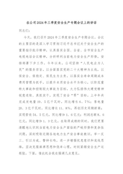 / 【七哥公文】2024年:在公司2024年三季度安全生产专题会议上的讲话+更多免费公文+VX:QiGeGongWen2024