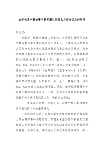 / 【七哥公文】2024年:在学校集中整治警示教育暨以案促改工作会议上的讲话+更多免费公文+VX:QiGeGongWen2024