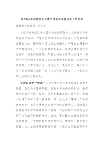 / 【七哥公文】2024年:在2024年非物质文化遗产传承发展座谈会上的发言+更多免费公文+VX:QiGeGongWen2024