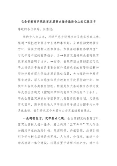 / 【七哥公文】2024年:在全省教育系统改革发展重点任务推进会上的汇报发言+更多免费公文+VX:QiGeGongWen2024