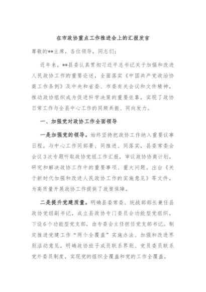 / 【七哥公文】2024年:在市政协重点工作推进会上的汇报发言+更多免费公文+VX:QiGeGongWen2024