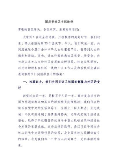 【七哥公文】2024年:国庆节社区书记致辞+更多免费公文+VX:QiGeGongWen2024