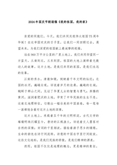 / 【七哥公文】2024年:2024年国庆节朗诵稿《我的祖国,我的家》+更多免费公文+VX:QiGeGongWen2024