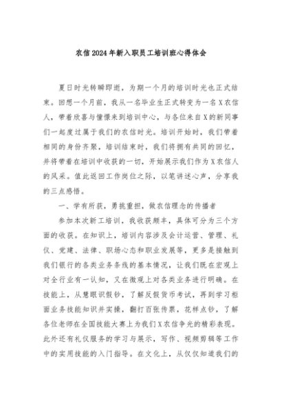 【七哥公文】2024年:农信2024年新入职员工培训班心得体会+更多免费公文+VX:QiGeGongWen2024