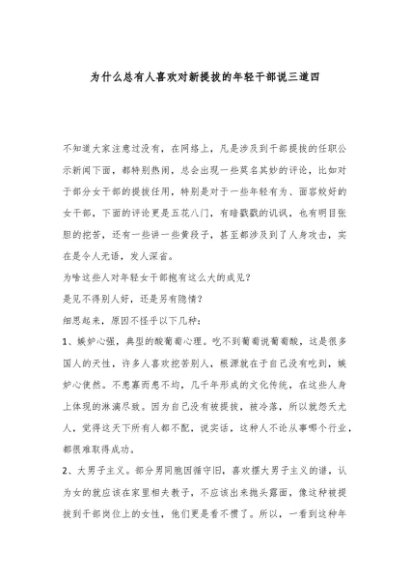 【七哥公文】2024年:为什么总有人喜欢对新提拔的年轻干部说三道四+更多免费公文+VX:QiGeGongWen2024