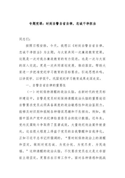 / 【七哥公文】2024年:专题党课:时刻自警自省自律,忠诚干净担当+更多免费公文+VX:QiGeGongWen2024