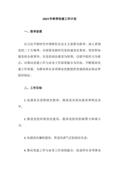 / 【七哥公文】2024年:2024年春季党建工作计划+更多免费公文+VX:QiGeGongWen2024