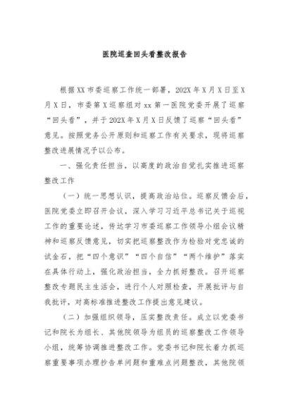【七哥公文】2024年:医院巡查回头看整改报告+更多免费公文+VX:QiGeGongWen2024
