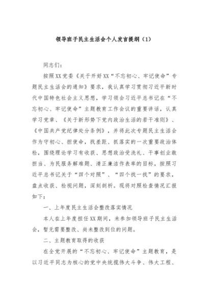 / 【七哥公文】2024年:领导班子民主生活会个人发言提纲(1)+更多免费公文+VX:QiGeGongWen2024