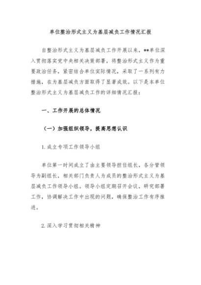 / 【七哥公文】2024年:单位整治形式主义为基层减负工作情况汇报+更多免费公文+VX:QiGeGongWen2024