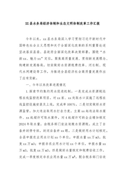 / 【七哥公文】2024年:XX县水务局经济体制和生态文明体制改革工作汇报+更多免费公文+VX:QiGeGongWen2024