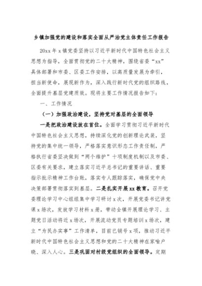 【七哥公文】2024年:乡镇加强党的建设和落实全面从严治党主体责任工作报告+更多免费公文+VX:QiGeGongWen2024