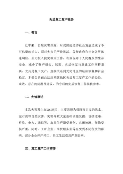 【七哥公文】2024年:灾后复工复产报告+更多免费公文+VX:QiGeGongWen2024