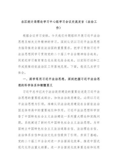【七哥公文】2024年:在区统计局理论学习中心组学习会议交流发言(法治工作)+更多免费公文+VX:QiGeGongWen2024