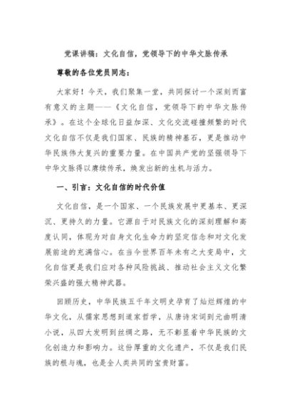 / 【七哥公文】2024年:党课讲稿:文化自信,党领导下的中华文脉传承+更多免费公文+VX:QiGeGongWen2024