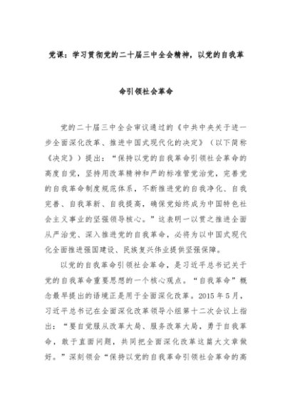 【七哥公文】2024年:党课:学习贯彻党的二十届三中全会精神,以党的自我革命引领社会革命+更多免费公文+VX:QiGeGongWen2024