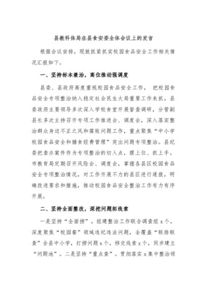 / 【七哥公文】2024年:县教科体局在县食安委全体会议上的发言+更多免费公文+VX:QiGeGongWen2024