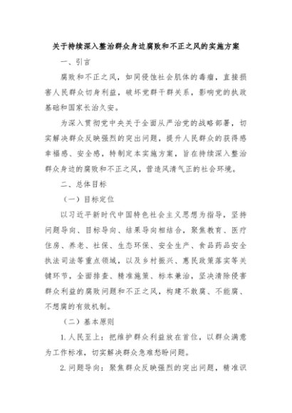 / 【七哥公文】2024年:关于持续深入整治群众身边腐败和不正之风的实施方案+更多免费公文+VX:QiGeGongWen2024