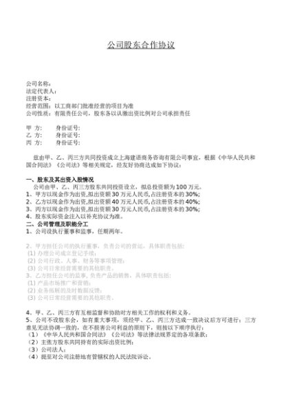【七哥公文】2024年:公司股东合作协议书模板+更多免费公文+VX:QiGeGongWen2024