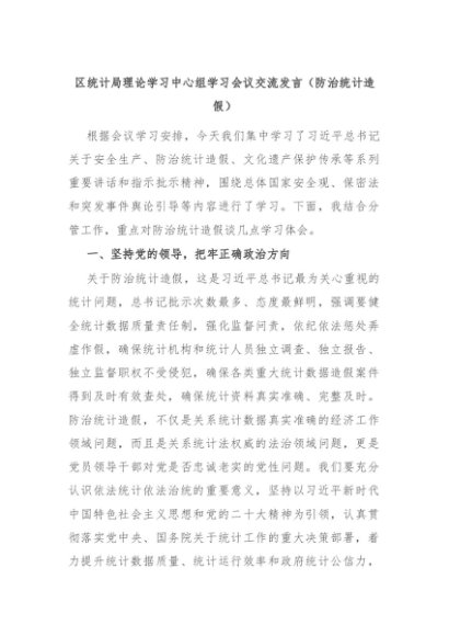 【七哥公文】2024年:区统计局理论学习中心组学习会议交流发言(防治统计造假)+更多免费公文+VX:QiGeGongWen2024