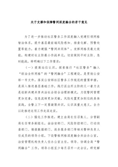 / 【七哥公文】2024年:关于支撑和保障警网深度融合的若干意见+更多免费公文+VX:QiGeGongWen2024