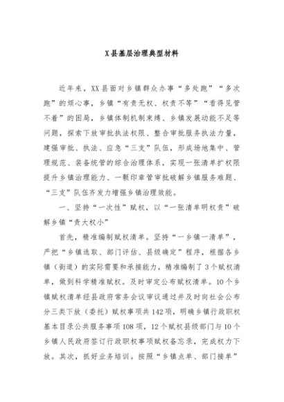 / 【七哥公文】2024年:X县基层治理典型材料+更多免费公文+VX:QiGeGongWen2024