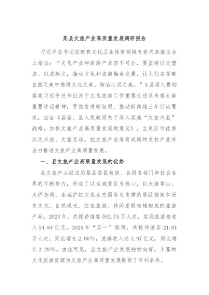 / 【七哥公文】2024年:某县文旅产业高质量发展调研报告+更多免费公文+VX:QiGeGongWen2024