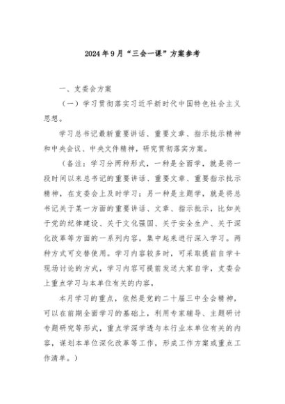 / 【七哥公文】2024年:2024年9月“三会一课”方案参考+更多免费公文+VX:QiGeGongWen2024
