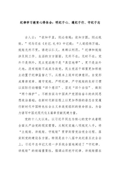【七哥公文】2024年:纪律学习教育心得体会:明纪于心、遵纪于行、守纪于志+更多免费公文+VX:QiGeGongWen2024