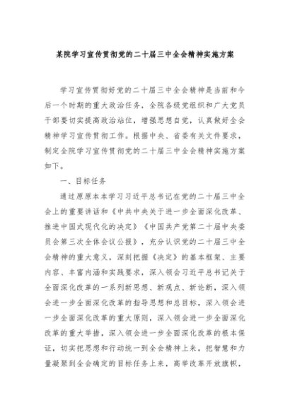 / 【七哥公文】2024年:某院学习宣传贯彻党的二十届三中全会精神实施方案+更多免费公文+VX:QiGeGongWen2024