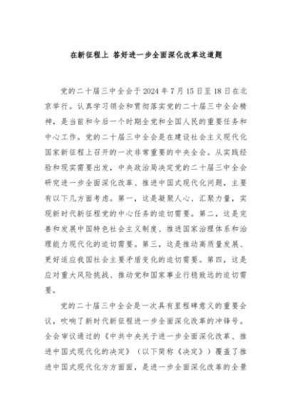 / 【七哥公文】2024年:在新征程上 答好进一步全面深化改革这道题+更多免费公文+VX:QiGeGongWen2024