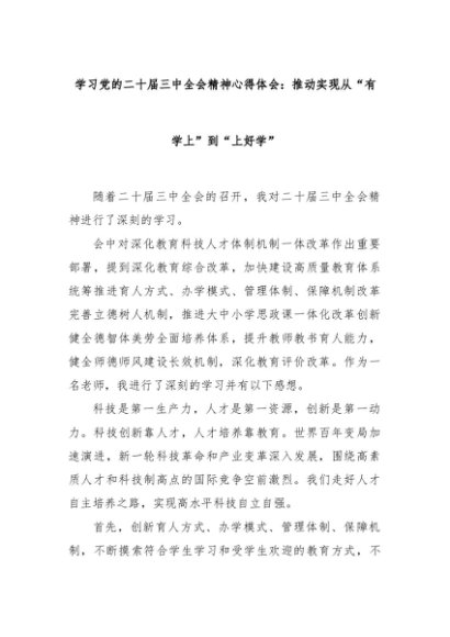 【七哥公文】2024年:学习党的二十届三中全会精神心得体会:推动实现从“有学上”到“上好学”+更多免费公文+VX:QiGeGongWen2024