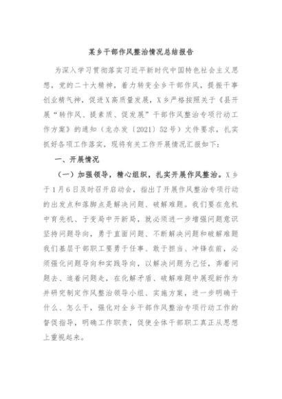 / 【七哥公文】2024年:某乡干部作风整治情况总结报告+更多免费公文+VX:QiGeGongWen2024