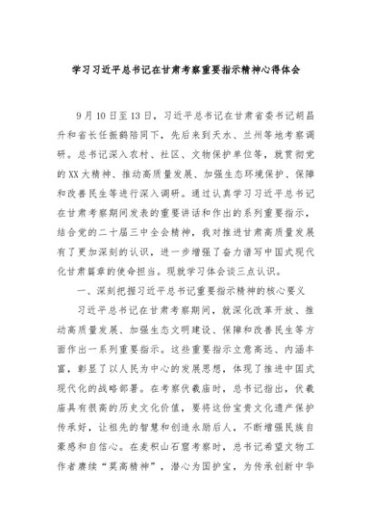 / 【七哥公文】2024年:学习习总书记在甘肃考察重要指示精神心得体会+更多免费公文+VX:QiGeGongWen2024