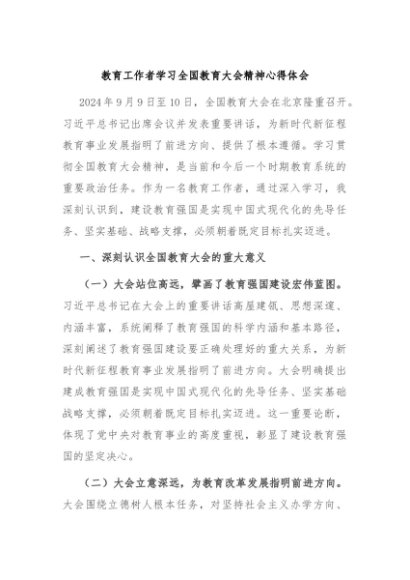 / 【七哥公文】2024年:教育工作者学习全国教育大会精神心得体会+更多免费公文+VX:QiGeGongWen2024