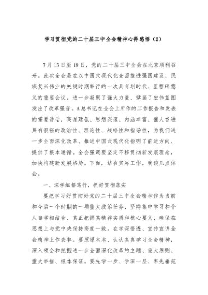 / 【七哥公文】2024年:学习贯彻党的二十届三中全会精神心得感悟(2)+更多免费公文+VX:QiGeGongWen2024